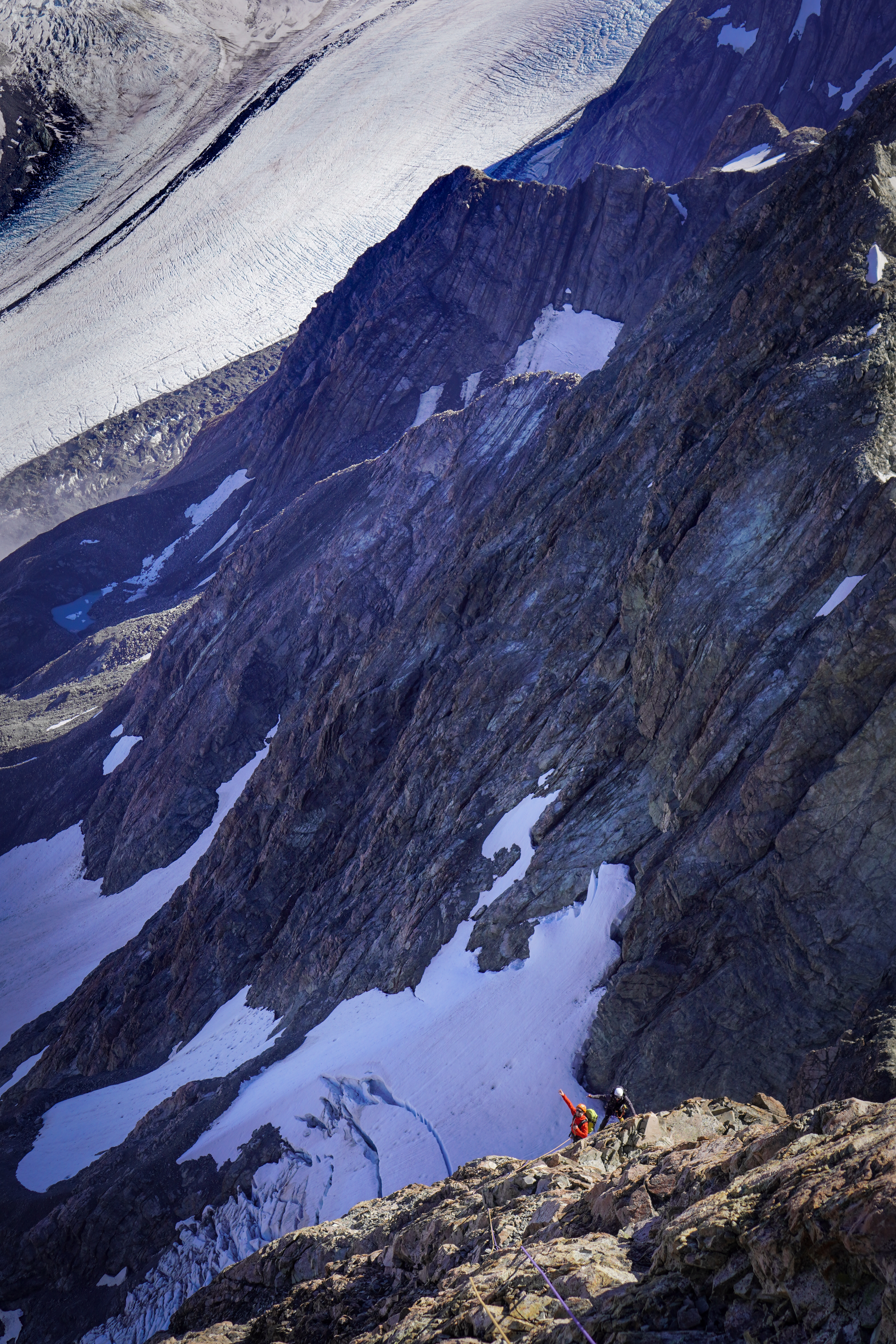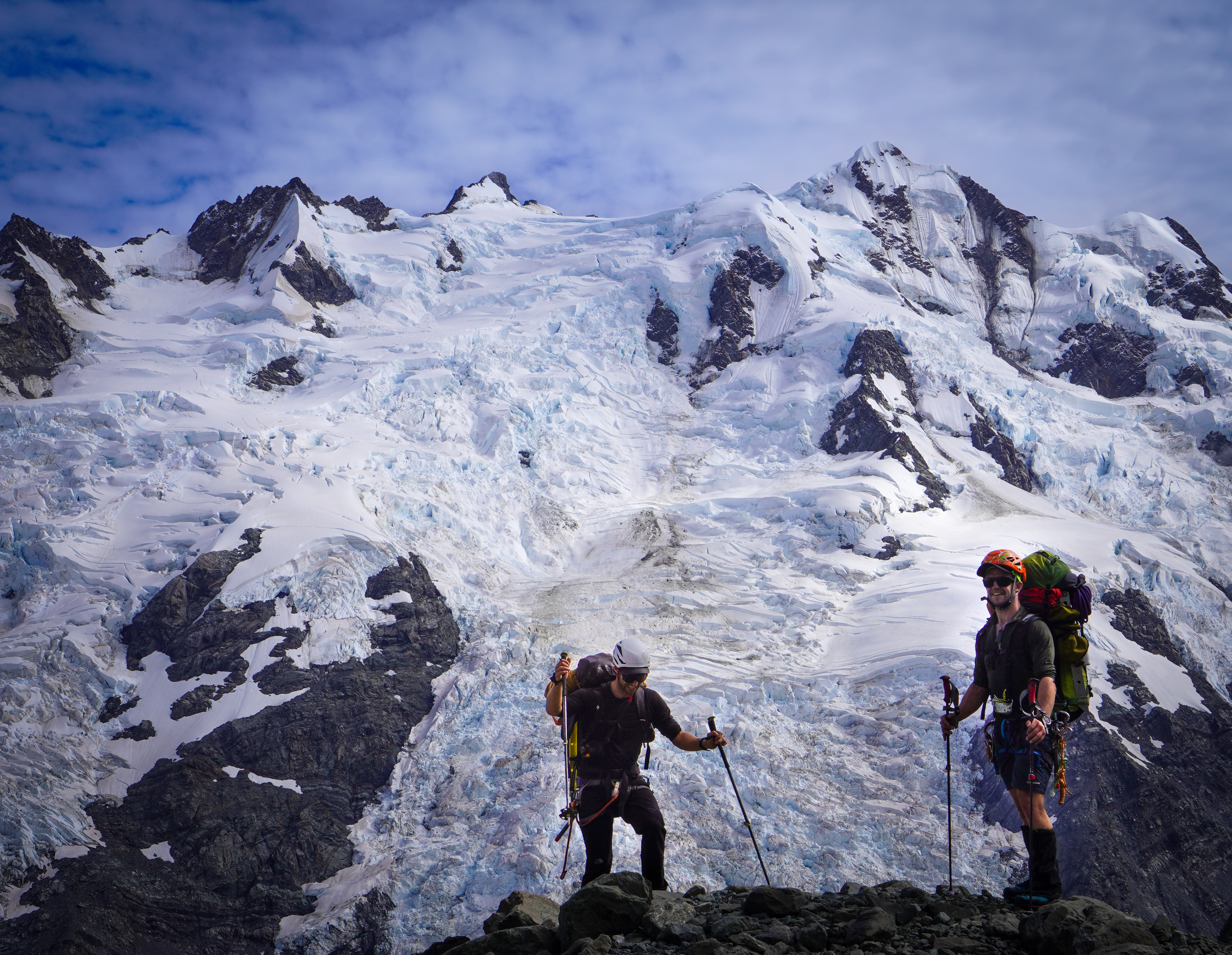 We were moving pretty slowly and were around 12 hours camp to camp but with a bit of simulclimbing, you could expect that to be a fair bit faster. But don’t underestimate how long the final ridge can take, more than one group has spent a night on the route!