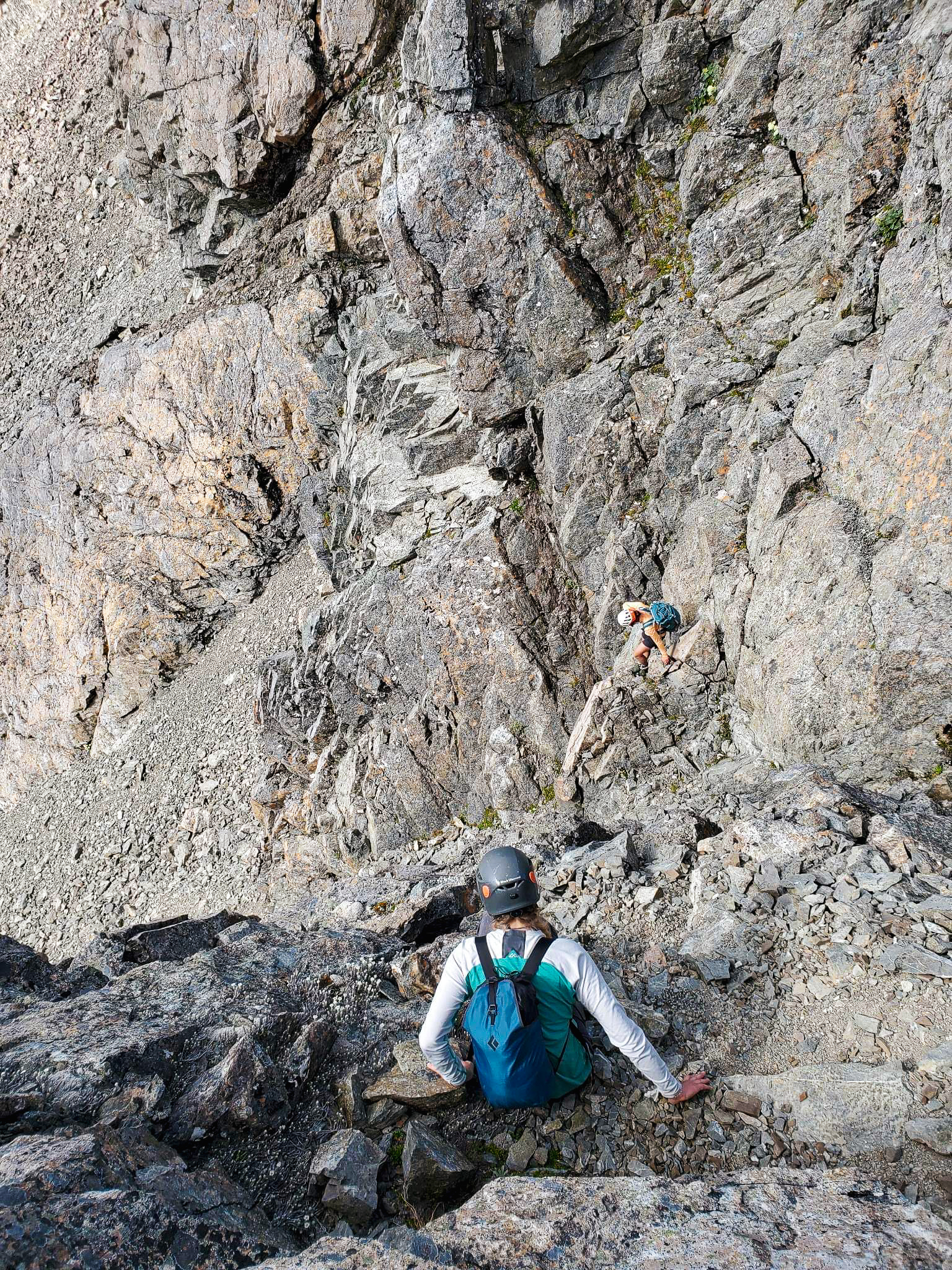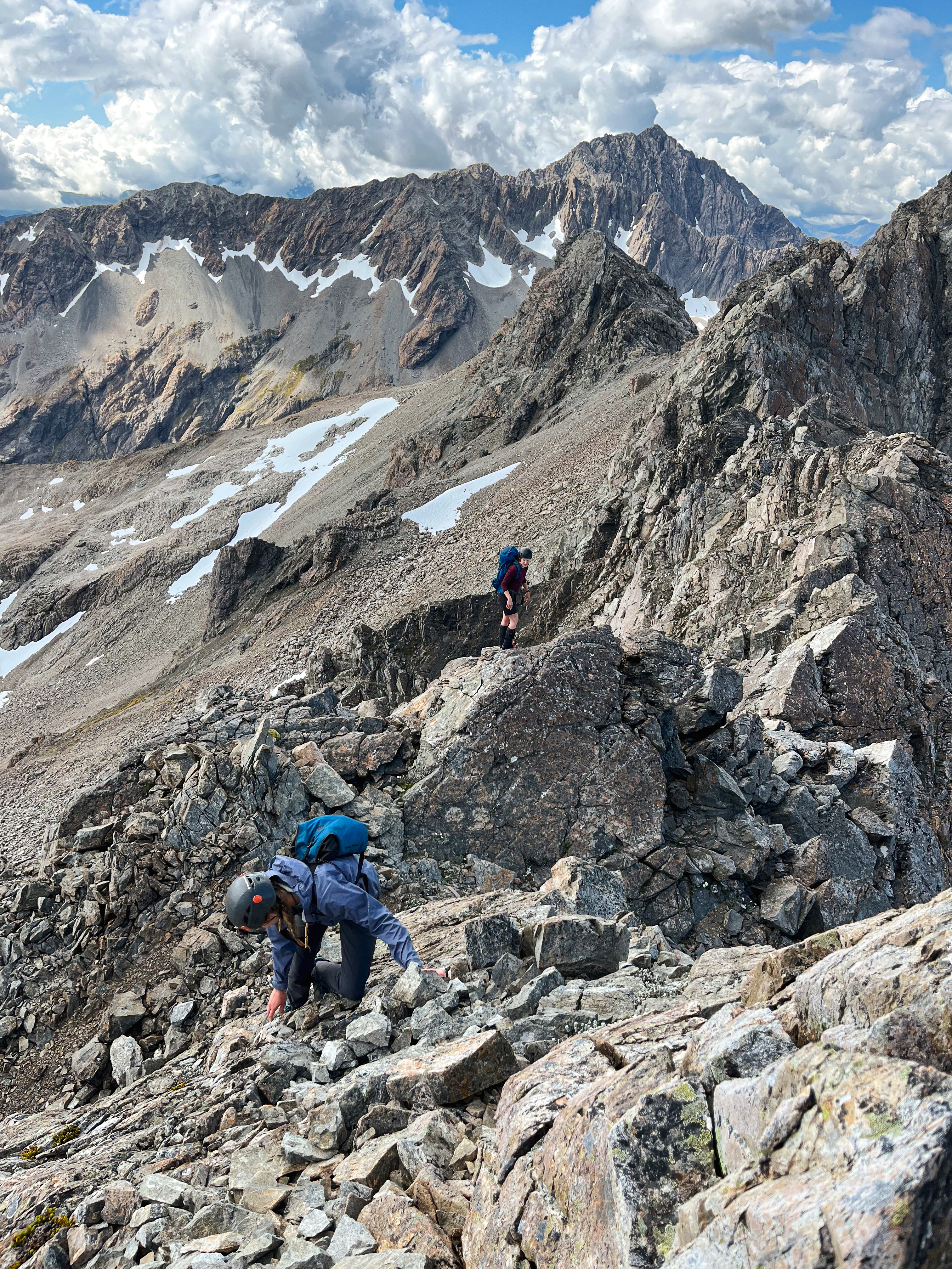 - Equipment: can be done in trail runners/approach shoes. We didnโt take a rope/rack, only helmets. Easy scrambling to low peak but between low and high peak we wanted a rope; instead we decided to go along the N ridge which was mostly fine.