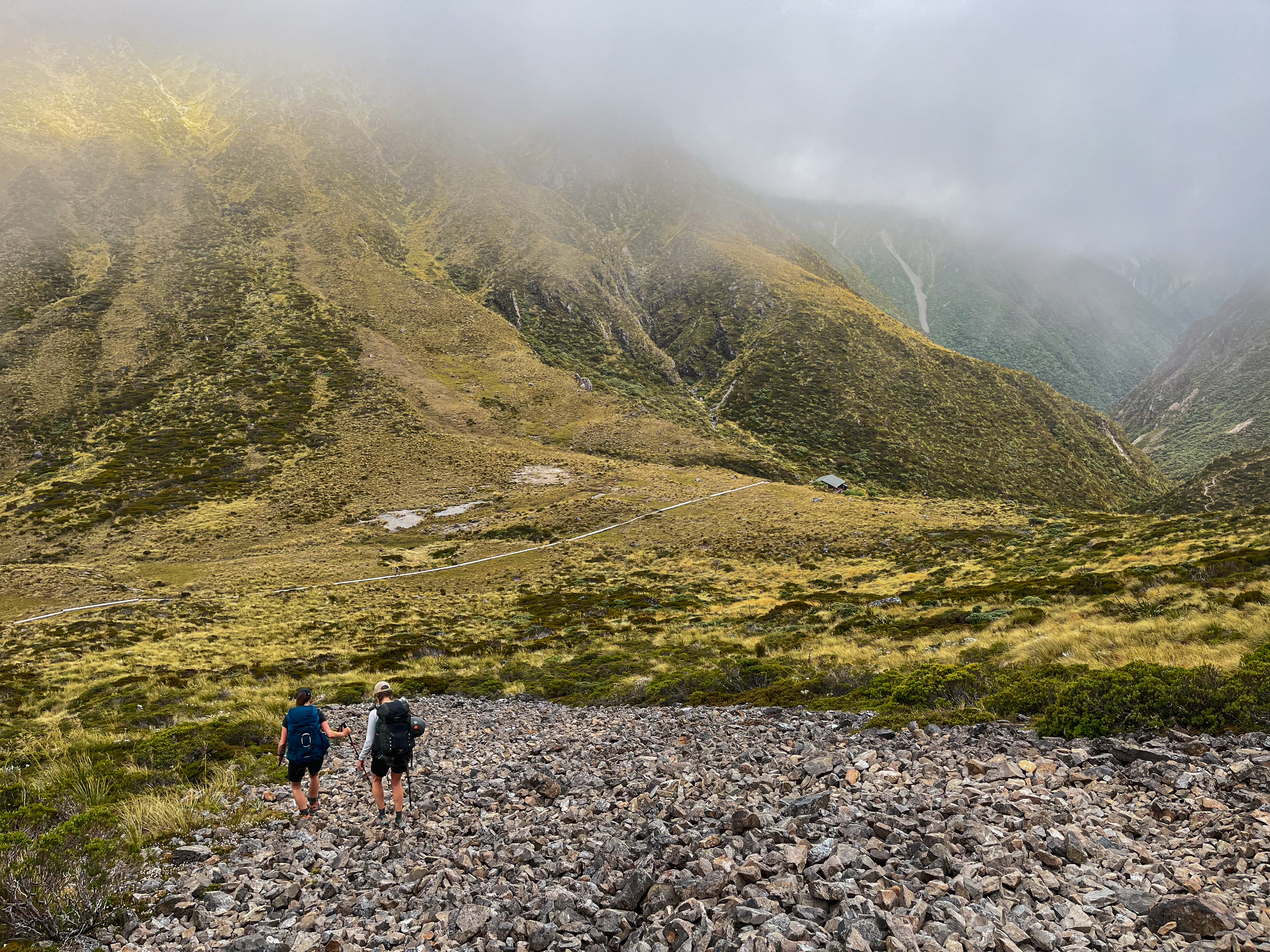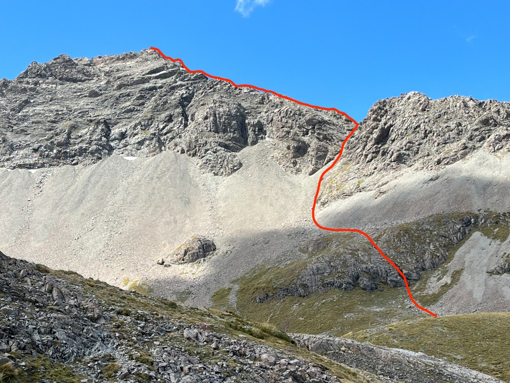 Instead, we opted to go along the N ridge towards point 1978. There are multiple opportunities to drop down from the ridge onto scree, but we were enjoying the scrambling so continued so far as we felt comfortable then dipped down. Towards the end we were increasingly sketched out by the level of choss so were relieved to be on safer ground – “oh blessed scree”. From here it was a quick/easy descent down to camp. Even found a 50m stretch of snow to glacade down! The next day we went out the same way due to time (and food constraints) – but another option would be to go over the ridge N of Oates, descend to Taruahuna Pass then to Edwards Hut and out (approx 9h). Great weekend trip, completed with ice-cream!