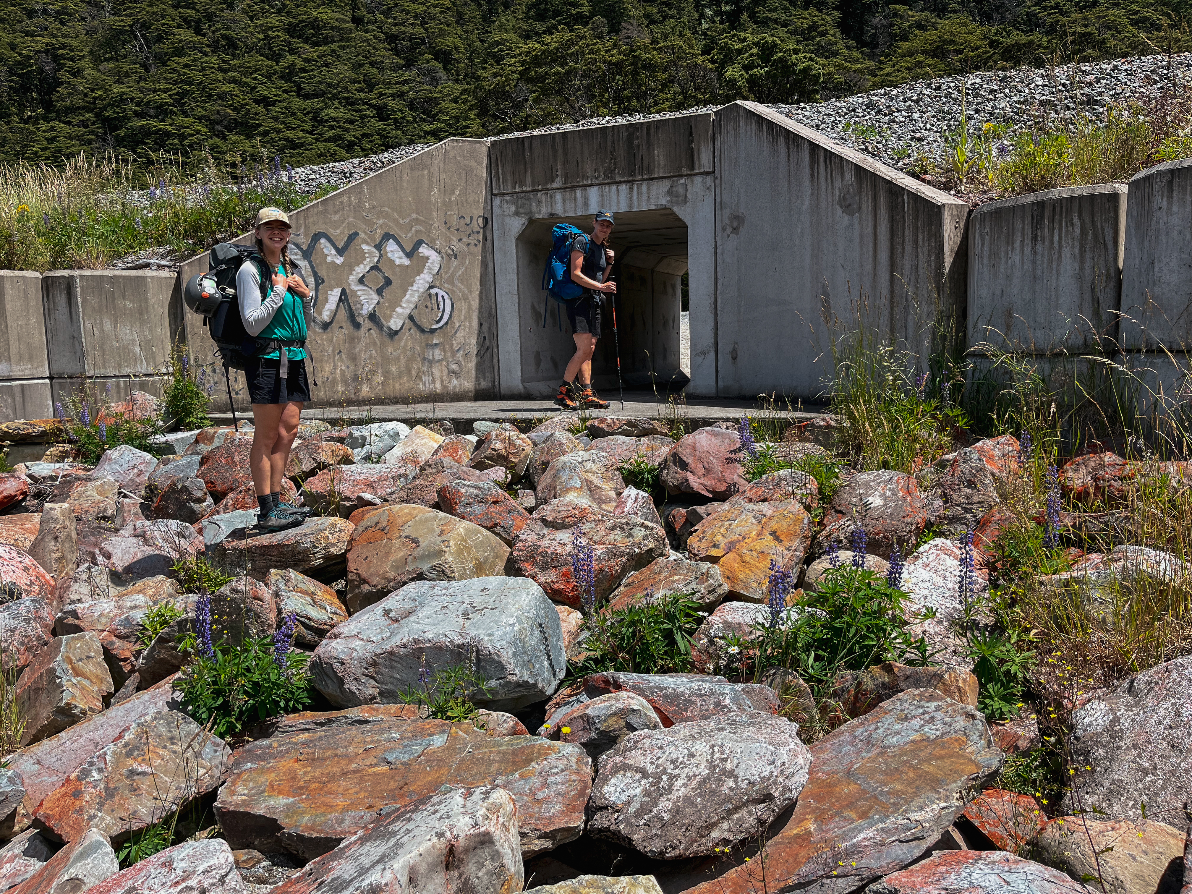 I do love an open body of water. And this one is a goody. A beautiful camping (and skinny dipping) location – albeit not as remote as you might hope as we had the company of 5 other tents, a raft and a glider! Mt Oates also provides an opportunity for some spicy scrambling. The walk up the Mingha takes you along the running segment of the coast to coast race so we bumped into lots of people training for it – so much lycra!
